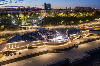 Особое место в новом ансамбле занимает открытый амфитеатр с площадью сцены 650 кв. м и вместимостью 2300 человек. Пешеходный доступ обеспечен через мостовой переход через рокадную дорогу, при этом предусмотрена удобная мобильная среда: для маломобильных жителей установлены два лифта, обеспечивающих беспрепятственный доступ к зрительским местам. Амфитеатр стал центром притяжения для культурных событий, концертов и городских праздников.